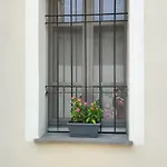 A acomodação se abre para uma vista o jardim.